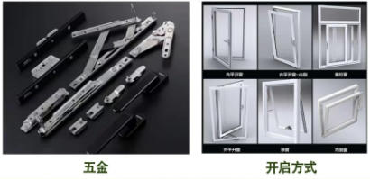 推拉開啟、折疊開啟,平開(外平開、內(nèi)平開)、外開下懸、內(nèi)開內(nèi)倒、落地內(nèi)開內(nèi)倒等。